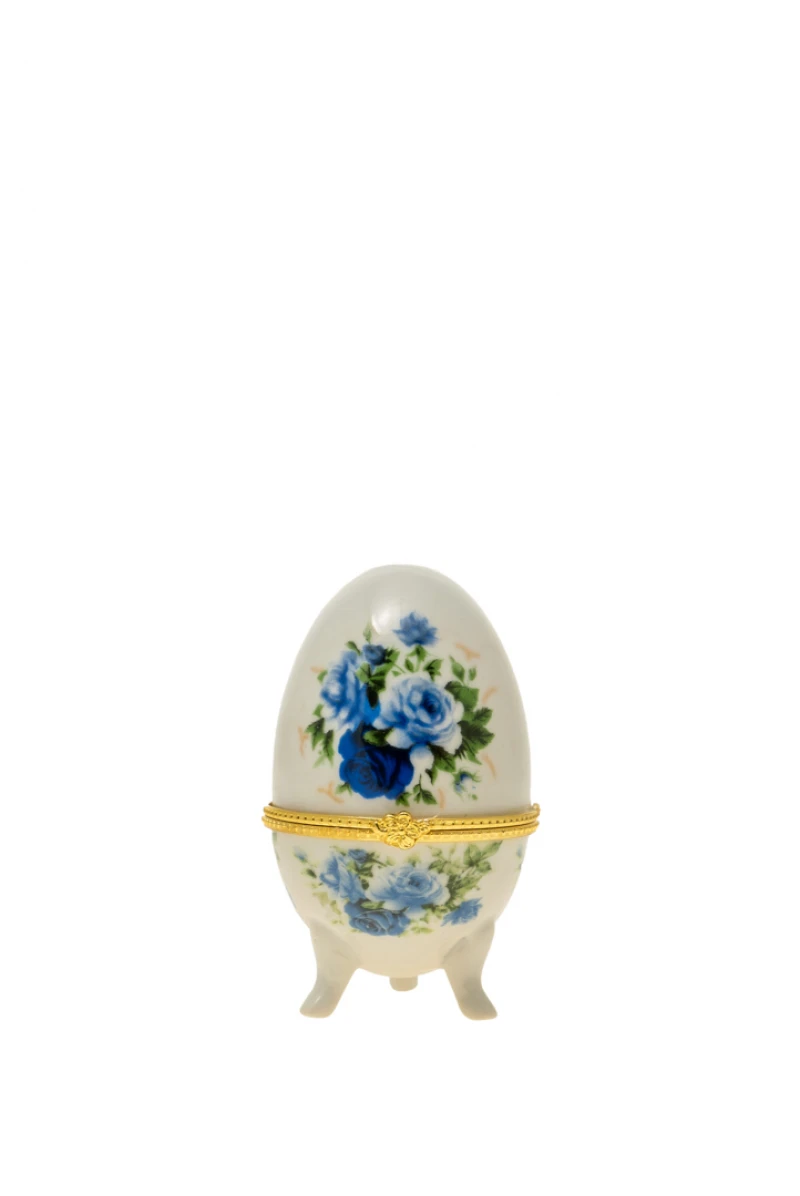 Διακοσμητικό επιτραπέζιο αυγό, πορσελάνης με σχέδιο λουλούδια σε λευκό - μπλε χρώμα με χρυσή λεπτομέρεια από την Zen Collection - Διαστάσεις: 5x7,5εκ.
