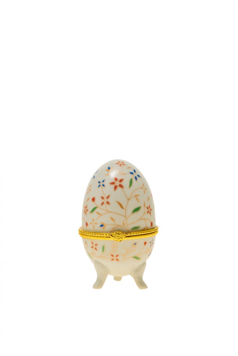 Διακοσμητικό επιτραπέζιο αυγό, πορσελάνης με σχέδιο πολύχρωμα λουλούδια σε λευκό χρώμα με χρυσή λεπτομέρεια από την Zen Collection - Διαστάσεις: 5x7,5εκ.