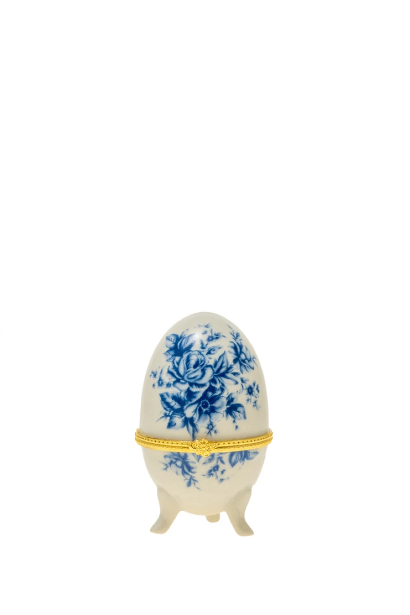 Διακοσμητικό επιτραπέζιο αυγό, πορσελάνης με σχέδιο λουλούδια σε λευκό - μπλε χρώμα με χρυσή λεπτομέρεια από την Zen Collection - Διαστάσεις: 5x7,5εκ.