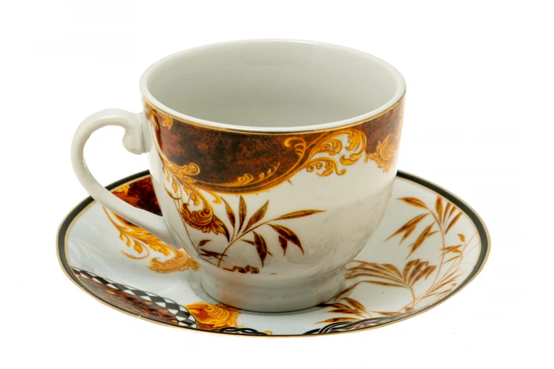 Σετ 6τμχ φλυτζάνι τσαγιού με πιατάκι, πορσελάνης σε καφέ αποχρώσεις με σχέδιο από την Zen Collection - Χωρητικότητας: 180ml.