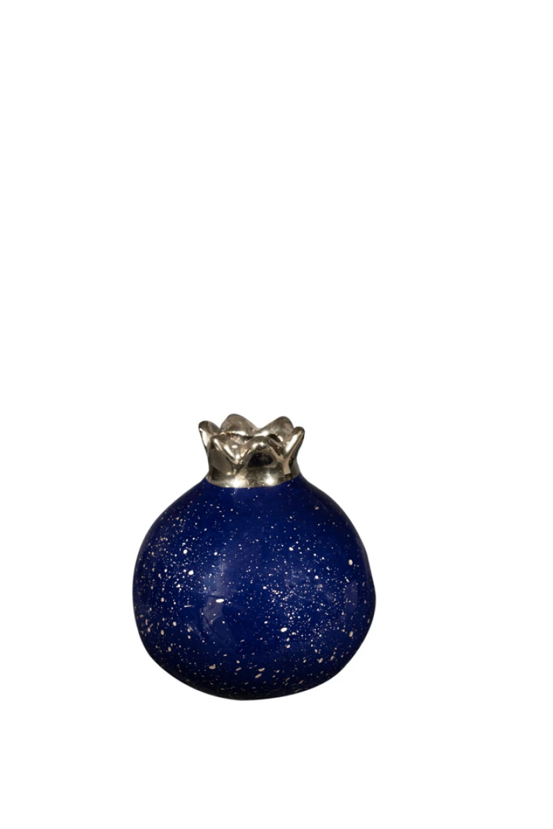 Ρόδι κεραμικό σε μπλε γυαλιστερό χρώμα με χρυσές πιτσιλιές από την Zen Collection - Διαστάσεις: 7,6εκ. - Η ελάχιστη ποσότητα αγοράς για αυτό το προϊόν είναι 6τμχ.