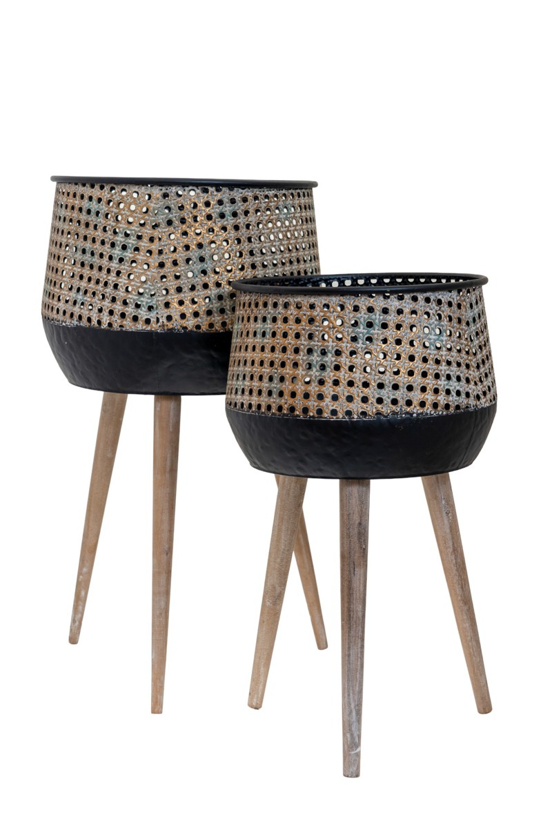Κασπώ Σετ 2τμχ Μεταλλικά Μαύρο-Μπεζ 37,5x64,5εκ.-32,3x53,5εκ. Zen Collection 23.2.48649
