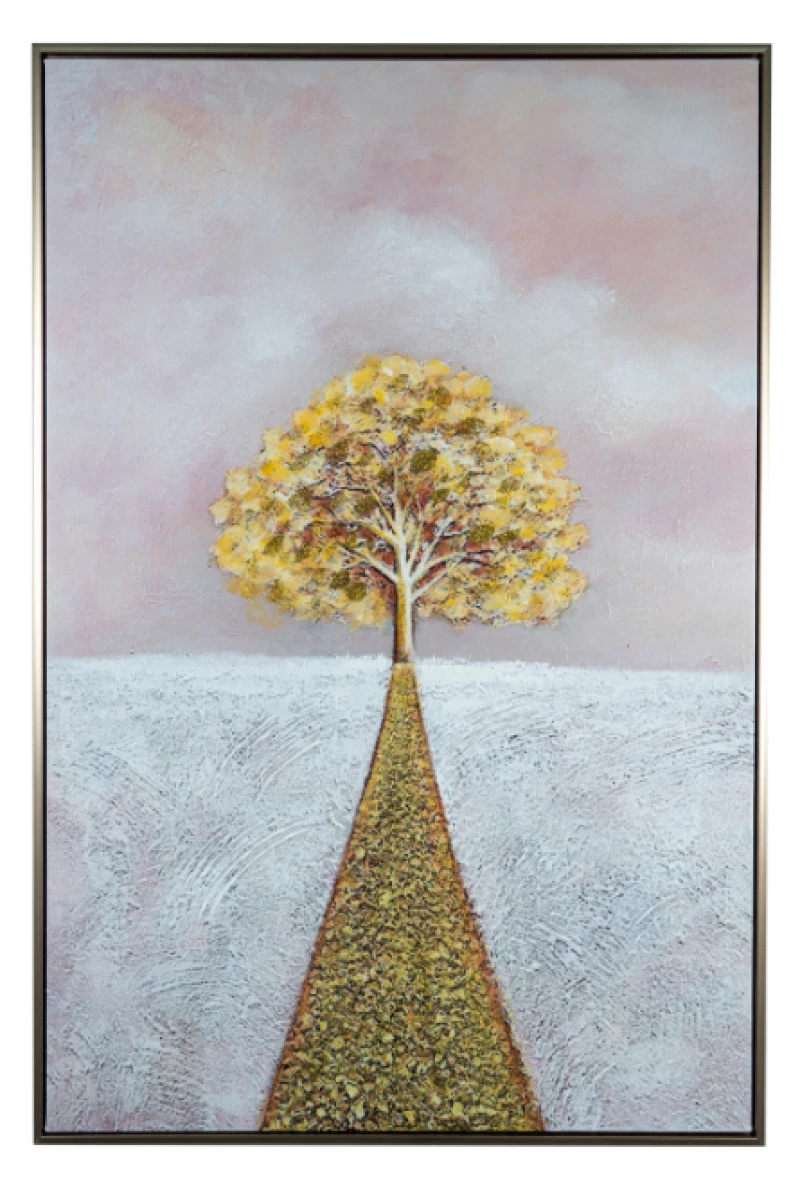 Πίνακας σε καμβά με σχέδιο δέντρο με δρόμο σε χρυσό χρώμα από την Zen Collection - Διαστάσεις: 60x3x90εκ.