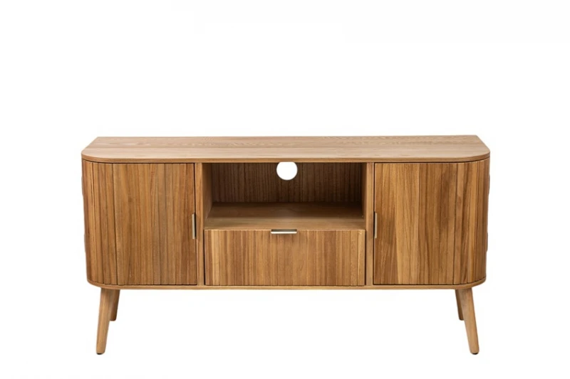 Έπιπλο τηλεόρασης ξύλινο σε καφέ χρώμα με μεταλλικά χερούλια από την Zen Collection - Διαστάσεις: 115x37x58εκ.