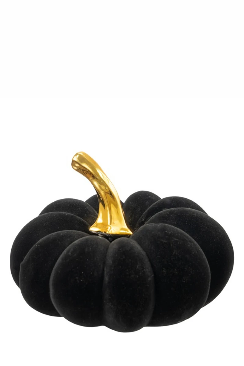 Κολοκύθα βελούδινη σε μαύρο χρώμα με χρυσό κεραμικό κοτσάνι από την Zen Collection - Διαστάσεις: 19x17,5x12,8εκ.
