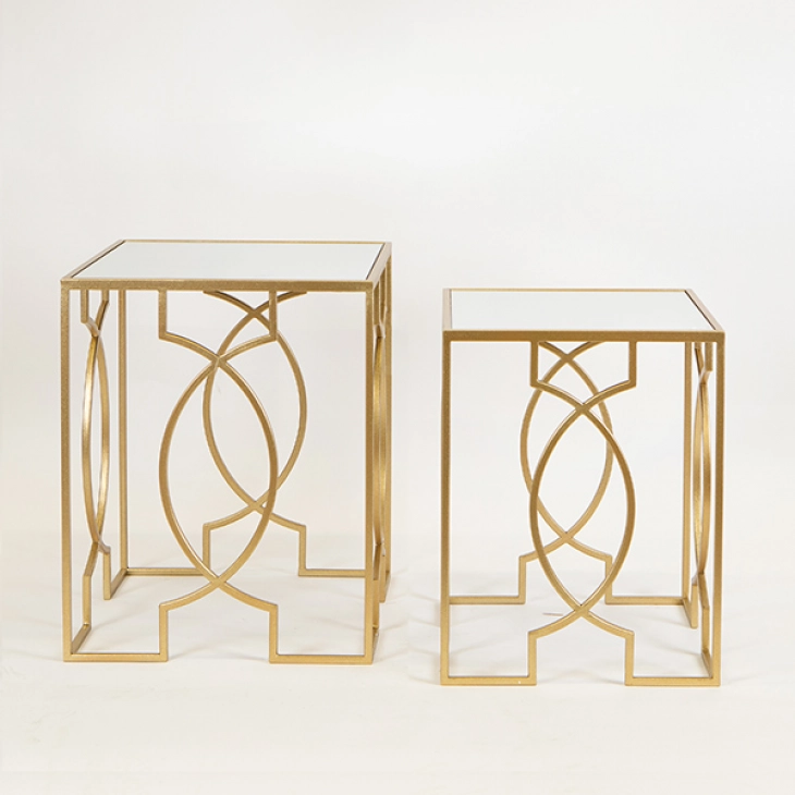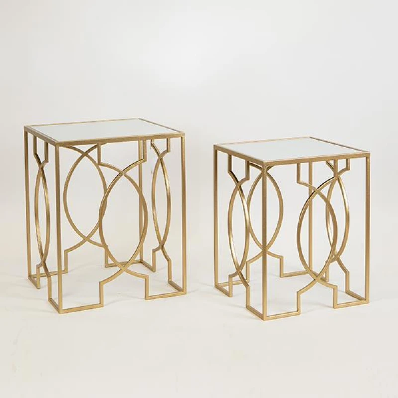 Τραπεζάκι Βοηθητικό Σετ 2τμχ Μεταλλικό-Γυαλί Χρυσό 40,5x40,5x51,5εκ.-35,5x35,5x46,5εκ. ESTHETI 750-39516