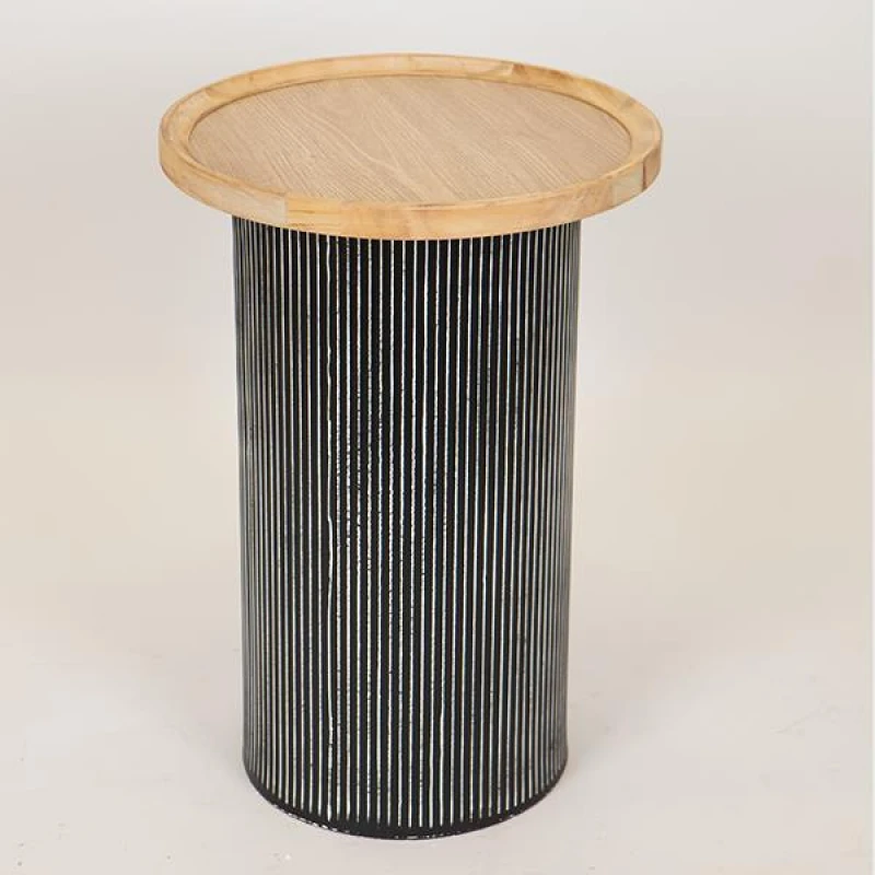 Τραπεζάκι βοηθητικό ξύλινο σε natural χρώμα με μαύρη βάση από την ESTHETI - Διαστάσεις: 35x35x51εκ.