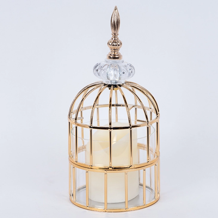 Φανάρι κλουβί μεταλλικό σε χρυσό χρώμα από την ESTHETI - Διαστάσεις: 13x24εκ.