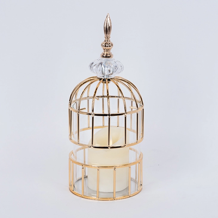 Φανάρι κλουβί μεταλλικό σε χρυσό χρώμα από την ESTHETI - Διαστάσεις: 13x32εκ.