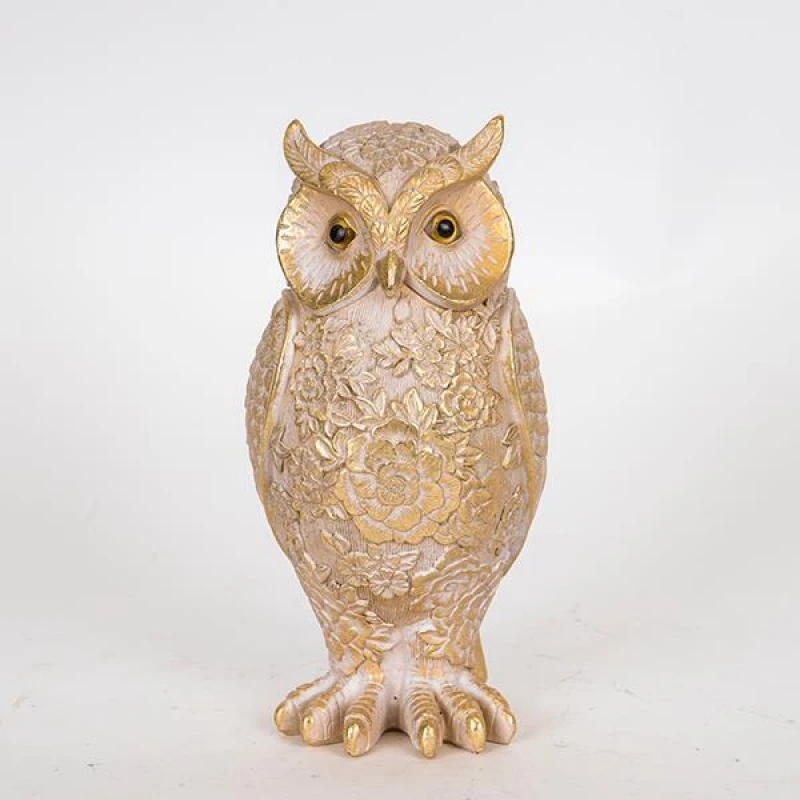 Διακοσμητική επιτραπέζια κουκουβάγια polyresin σε γκρι-χρυσό χρώμα από την ESTHETI - Διαστάσεις: 10,5x10x22εκ.