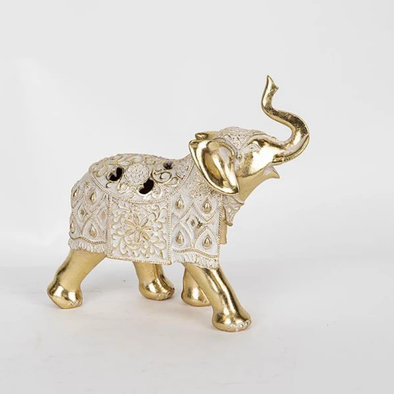 Διακοσμητικό επιτραπέζιο ελέφαντας polyresin σε λευκό-χρυσό χρώμα από την ESTHETI - Διαστάσεις: 23x8,5x21εκ.