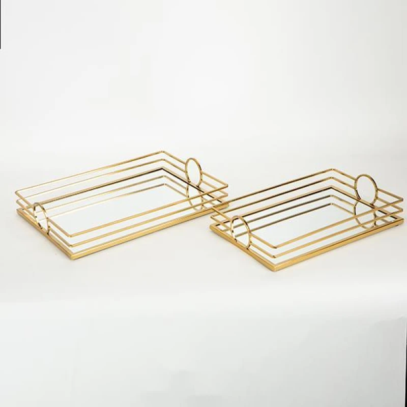 Δίσκος Σερβιρίσματος Σετ 2τμχ Μεταλλικός Με Καθρέπτη Χρυσό 35x25x6,5εκ.-30,5x20,5x6,5εκ. ESTHETI 752-16017
