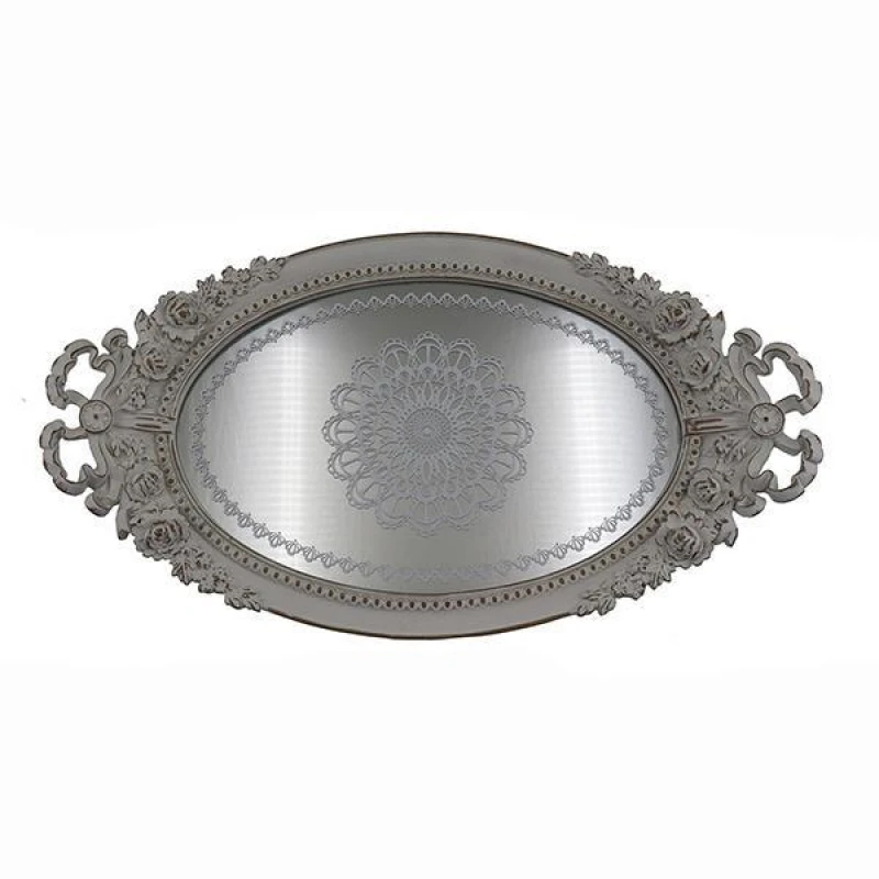 Δίσκος Polyresin Με Καθρέπτη Ασημί 44,2x24x4,2εκ. ESTHETI 752-16069