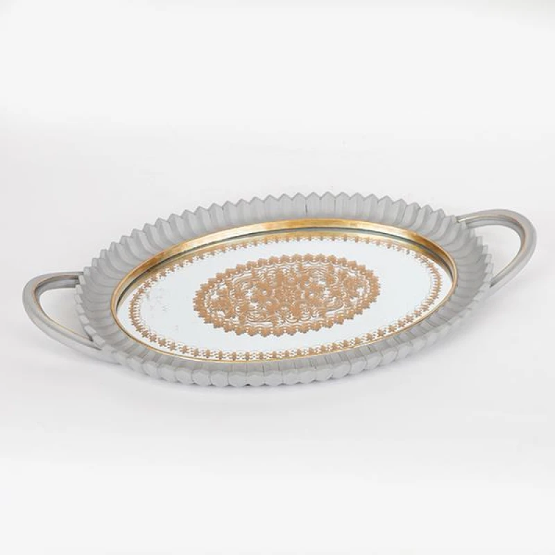 Δίσκος Polyresin Με Καθρέπτη Γκρι-Χρυσός 39x3,5x24εκ. ESTHETI 752-16085