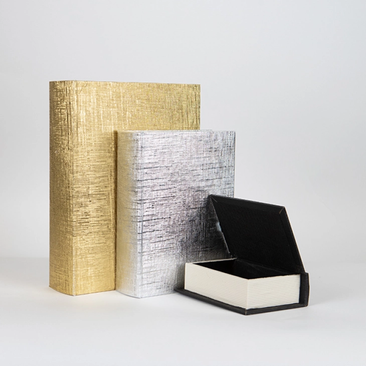 Κρυφά και κομψά, τα κουτιά σε σχήμα βιβλίου είναι η τέλεια λύση για αποθήκευση με στυλ. Ιδανικά για να κρύβετε μικροαντικείμενα, ενώ παράλληλα προσθέτουν μια ιδιαίτερη αισθητική στη βιβλιοθήκη ή το τραπέζι σας!