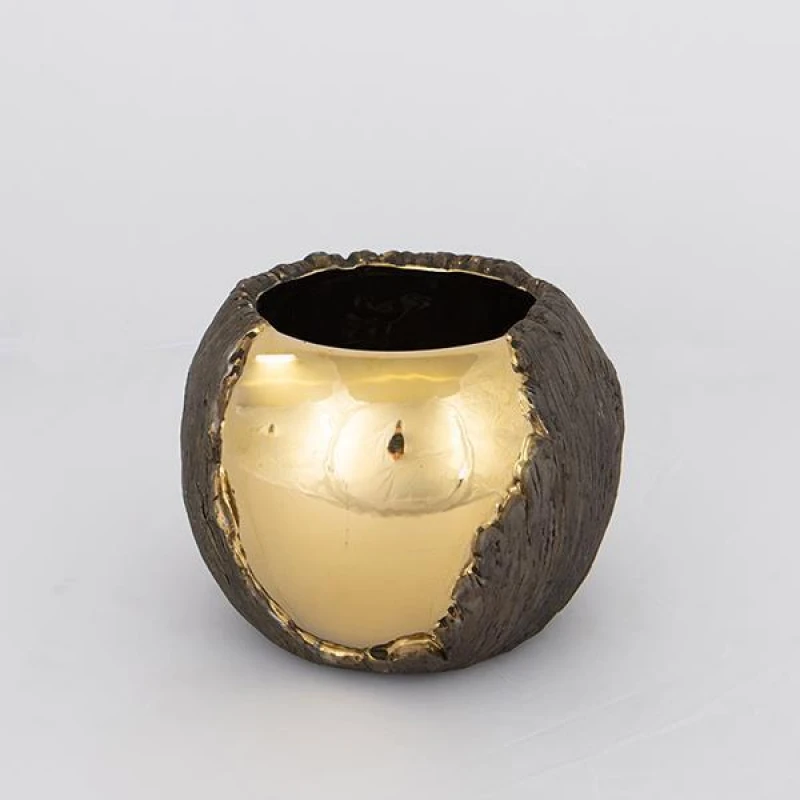 Κασπώ κεραμικό σε καφέ-χρυσό χρώμα από την ESTHETI - Διαστάσεις: 18,5x18,5x15εκ.