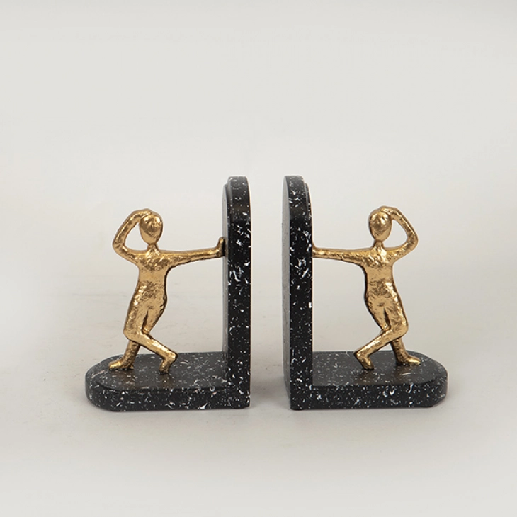 Βιβλιοστάτης Σετ 2τμχ Polyresin Με Όψη Μαρμάρου Χρυσός-Μαύρος 21,7x6,5x14,7εκ. ESTHETI 752-19014