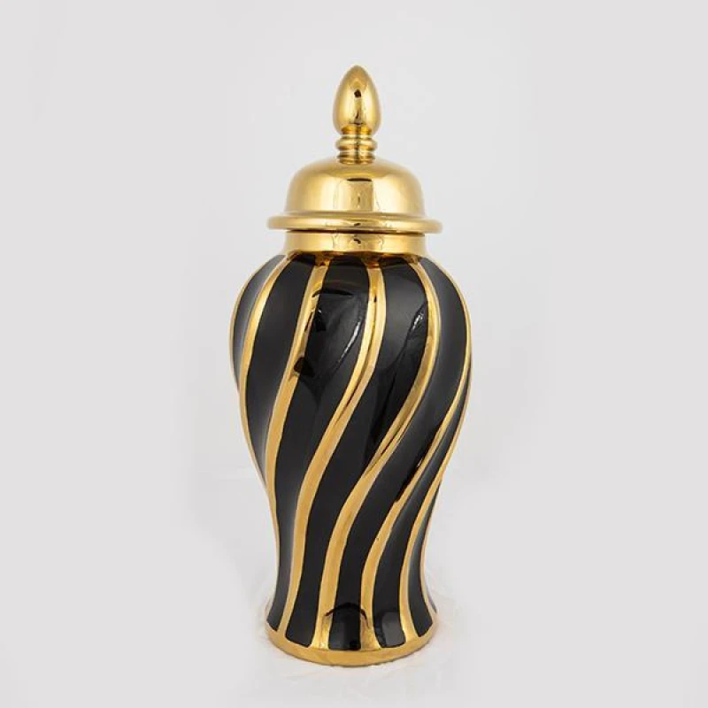 Βάζο με καπάκι κεραμικό σε χρυσό-μαύρο χρώμα χρώμα από την ESTHETI - Διαστάσεις: 17,5x17,5x40,8εκ.