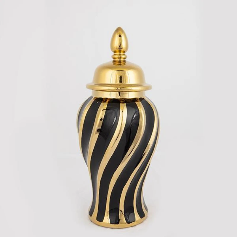 Βάζο με καπάκι κεραμικό σε χρυσό-μαύρο χρώμα χρώμα από την ESTHETI - Διαστάσεις: 16x16x36,5εκ.