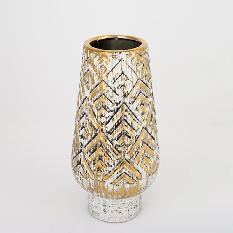 Βάζο κεραμικό σε λευκό-χρυσό χρώμα από την ESTHETI - Διαστάσεις: 12,5x12,5x31εκ.