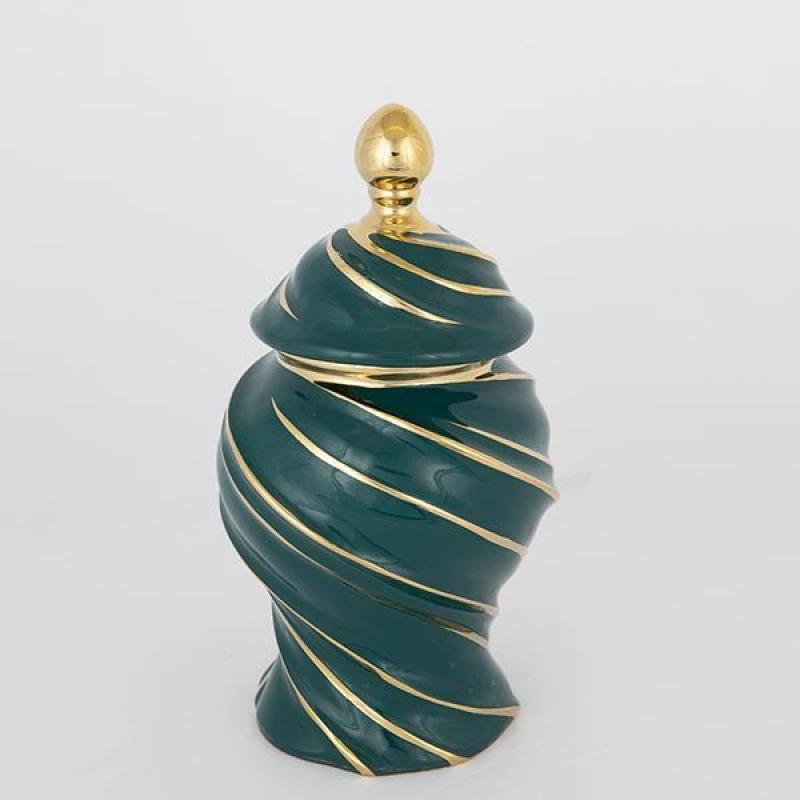 Βάζο με καπάκι κεραμικό σε πράσινο-χρυσό χρώμα από την ESTHETI - Διαστάσεις: 17x30,5εκ.