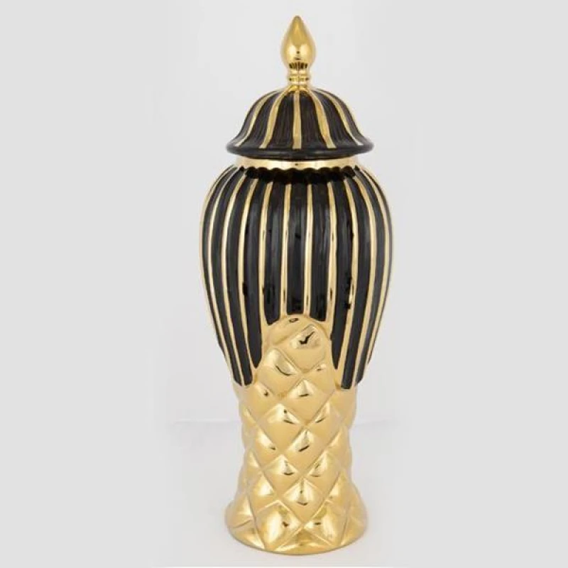 Βάζο Με Καπάκι Κεραμικό Μαύρο-Χρυσό 15x35εκ. ESTHETI 752-20117