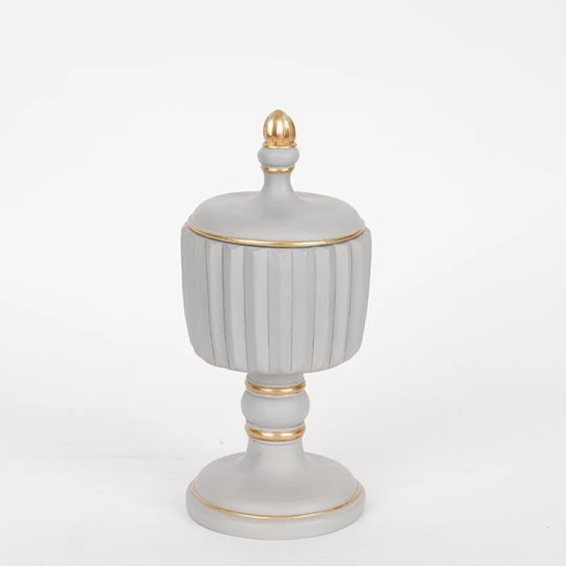 Διακοσμητικό Μπωλ Με Καπάκι Polyresin Γκρι-Χρυσό 9x9x21εκ. 752-21039