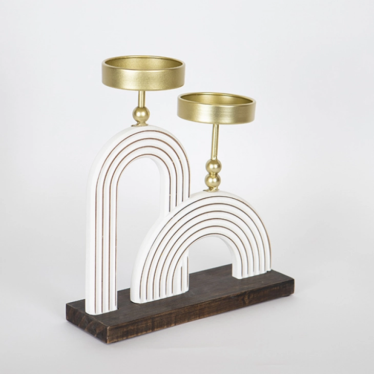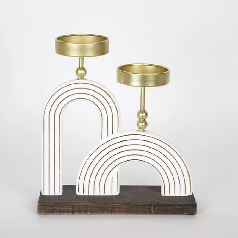 Κηροπήγιο 2 θέσεων ξύλινο με τοξωτό σχήμα και μεταλλική βάση σε λευκό - χρυσό χρώμα από την ESTHETI - Διαστάσεις: 23,5x8x26εκ.