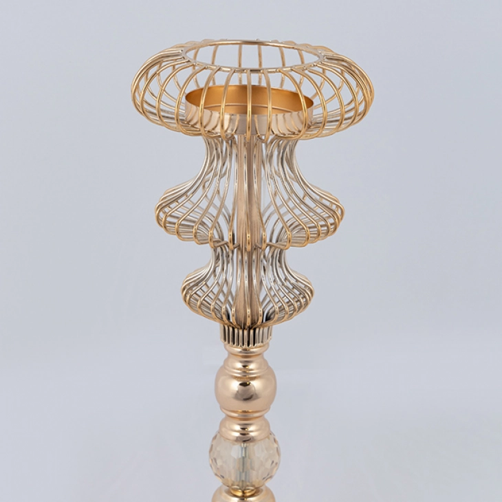 Κηροπήγιο μεταλλικό σε χρυσό χρώμα από την ESTHETI - Διαστάσεις: 16x41εκ.