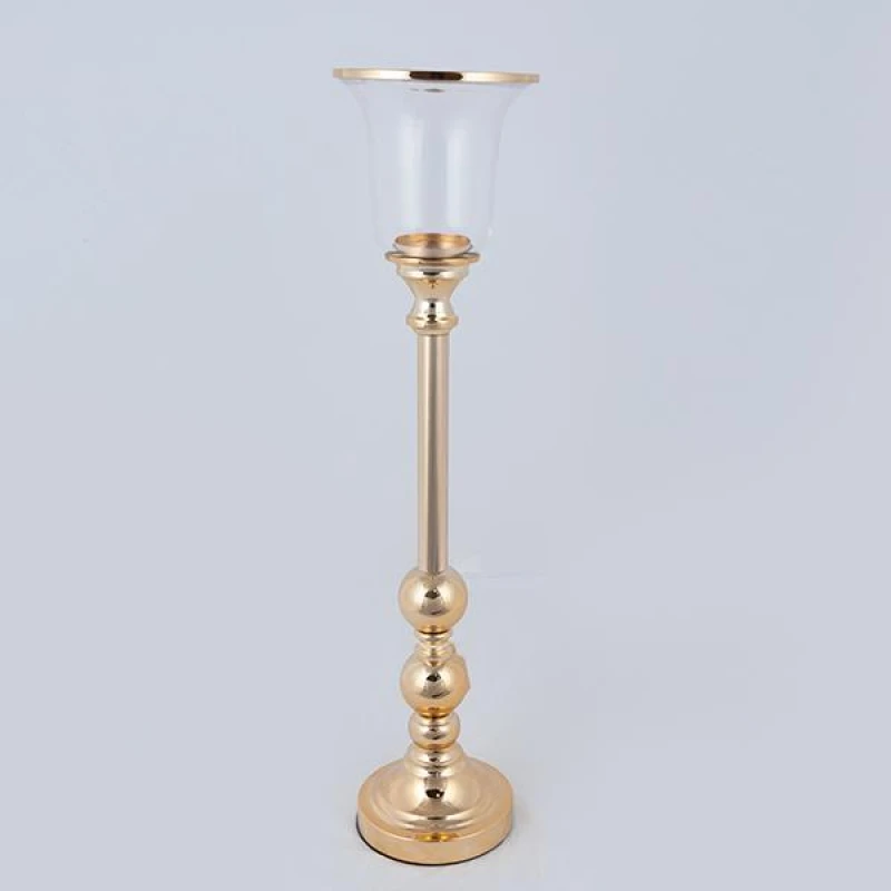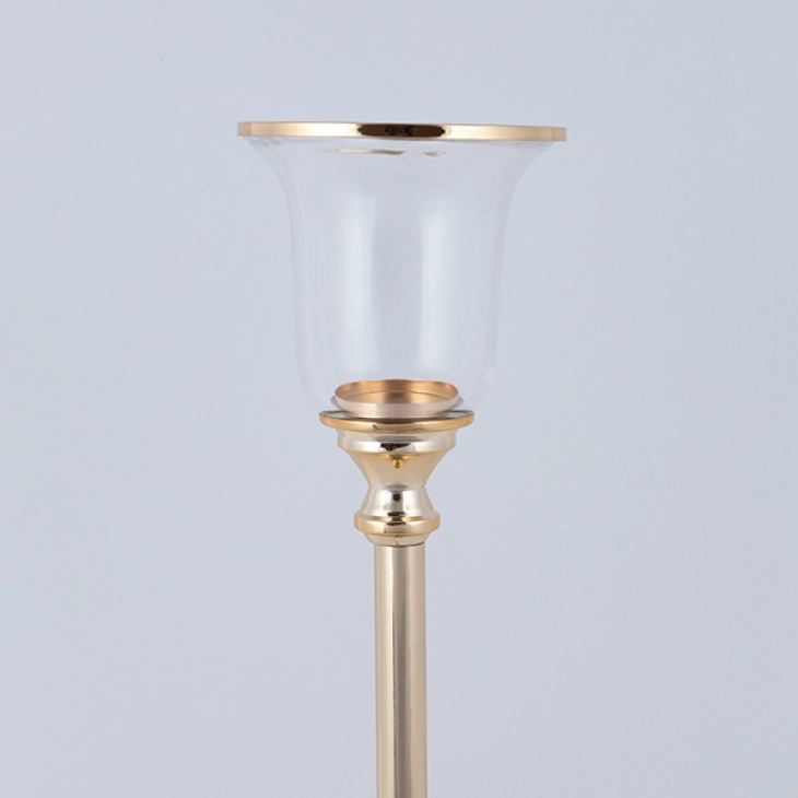 Κηροπήγιο μεταλλικό με γυάλινη βάση για κερί σε χρυσό χρώμα από την ESTHETI - Διαστάσεις: 15x64εκ.