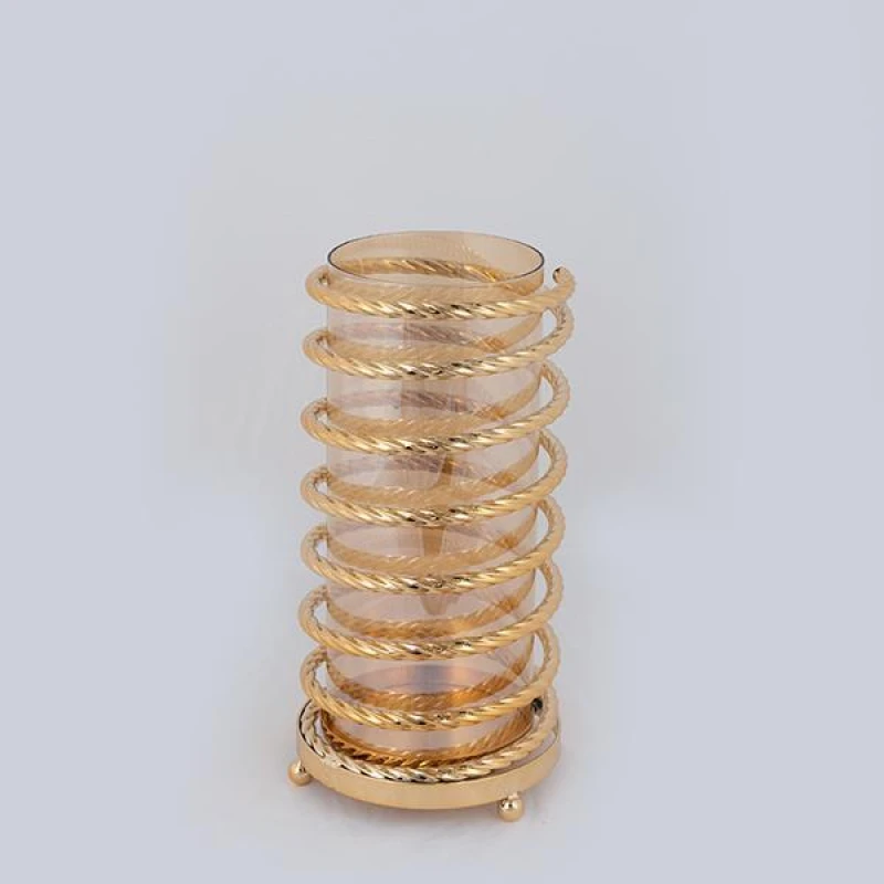Κηροπήγιο μεταλλικό - γυάλινο σε χρυσό χρώμα από την ESTHETI - Διαστάσεις: 15x30εκ.