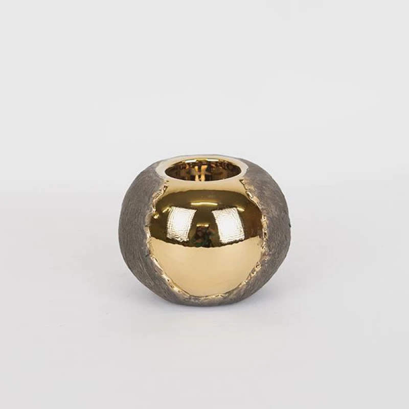 Κηροπήγιο κεραμικό σε καφέ - χρυσό χρώμα από την ESTHETI - Διαστάσεις: 10,5x10,5x7,5εκ.
