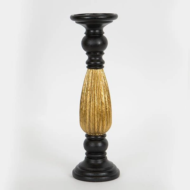 Κηροπήγιο polyresin σε μαύρο - χρυσό χρώμα από την ESTHETI - Διαστάσεις: 10,5x10,5x35εκ.