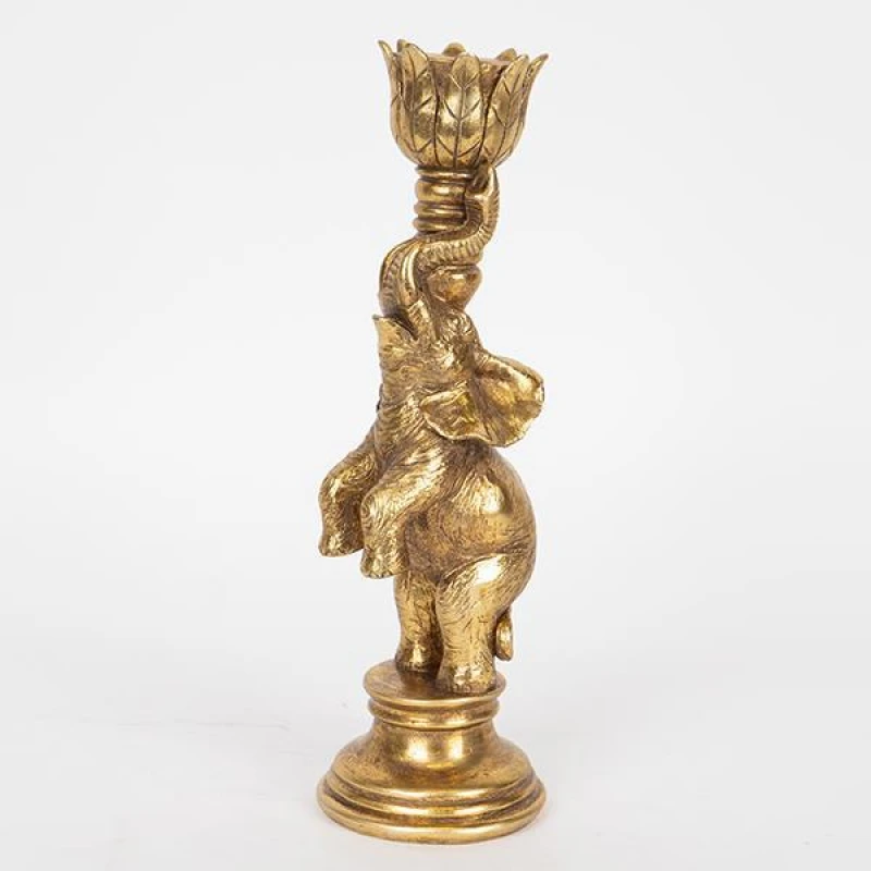 Κηροπήγιο Ελέφαντας Polyresin Αντικέ Χρυσό 8x8,5x27εκ. ESTHETI 752-26044
