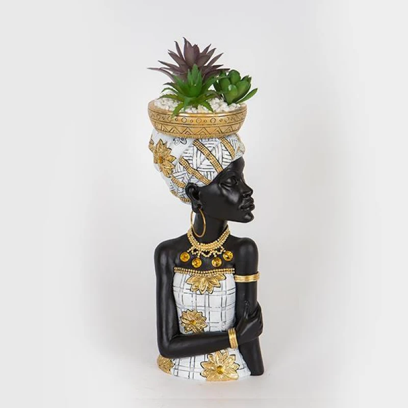 Διακοσμητική Επιτραπέζια Γυναικεία Φιγούρα Polyresin Χρυσή-Μαύρη-Λευκή 12x10x28,5εκ. ESTHETI 752-27056