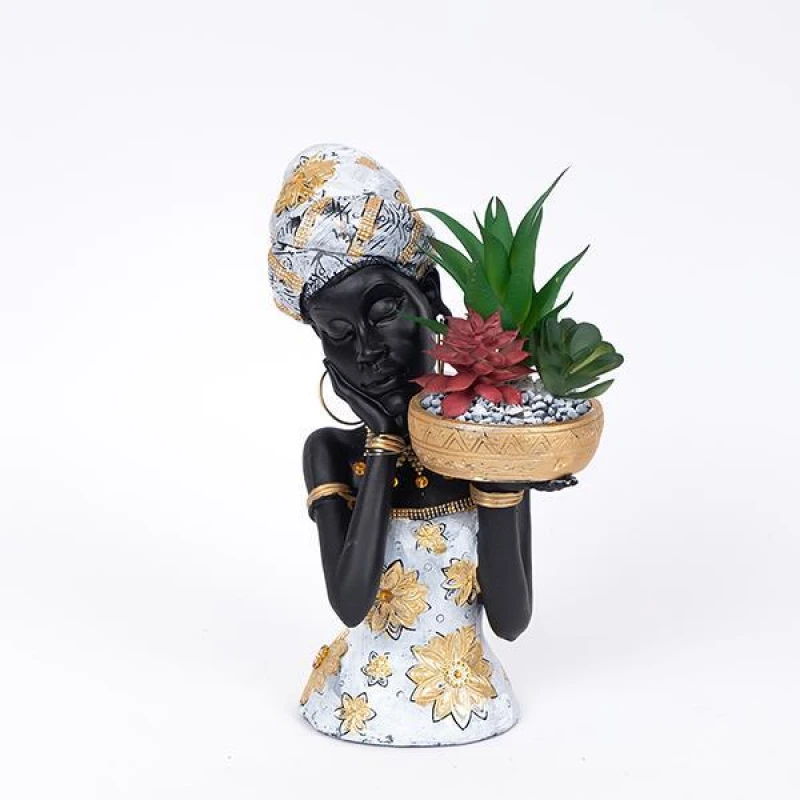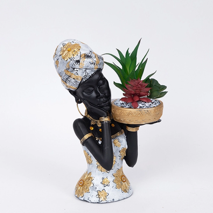 Διακοσμητική Επιτραπέζια Γυναικεία Φιγούρα Polyresin Χρυσή-Μαύρη-Λευκή 20x13x27εκ. ESTHETI 752-27057