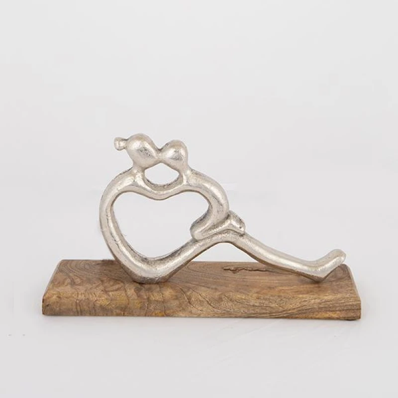 Διακοσμητική επιτραπέζια φιγούρα μεταλλική σε ασημί χρώμα πάνω σε ξύλινη βάση σε φυσικό χρώμα από την ESTHETI - Διαστάσεις: 32x8x27εκ.