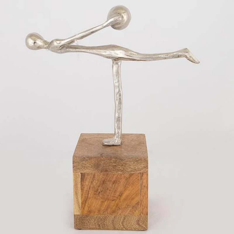 Διακοσμητική επιτραπέζια φιγούρα μεταλλική σε ασημί χρώμα πάνω σε ξύλινη βάση σε φυσικό χρώμα από την ESTHETI - Διαστάσεις: 30x13x39εκ.