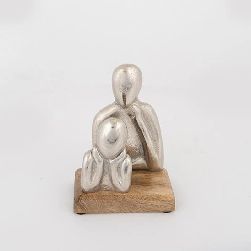 Διακοσμητικό επιτραπέζιο με φιγούρες μεταλλικό σε ασημί χρώμα πάνω σε ξύλινη βάση σε φυσικό χρώμα από την ESTHETI - Διαστάσεις: 13x8x18εκ.