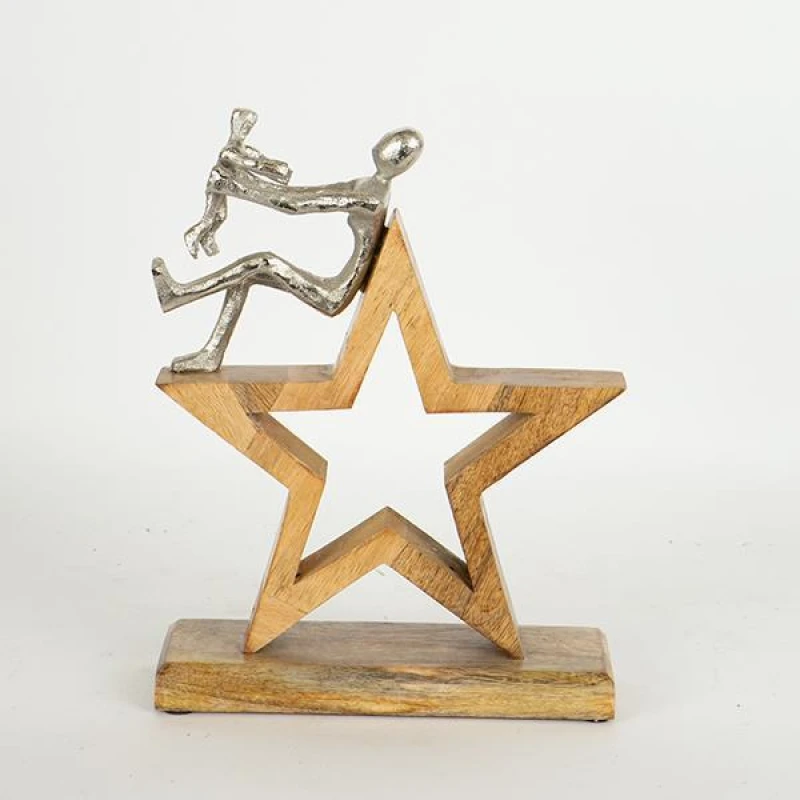 Επιτραπέζιο διακοσμητικό με μεταλλική φιγούρα μητέρα με παιδί σε ασημί χρώμα και ξύλινο αστέρι σε φυσικό χρώμα από την ESTHETI - Διαστάσεις: 25x8x30εκ.