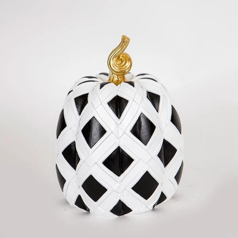Διακοσμητική κολοκύθα σε λευκό - μαύρο χρώμα με χρυσή λεπτομέρεια από την ESTHETI - Διαστάσεις: 19x19x24,5εκ.