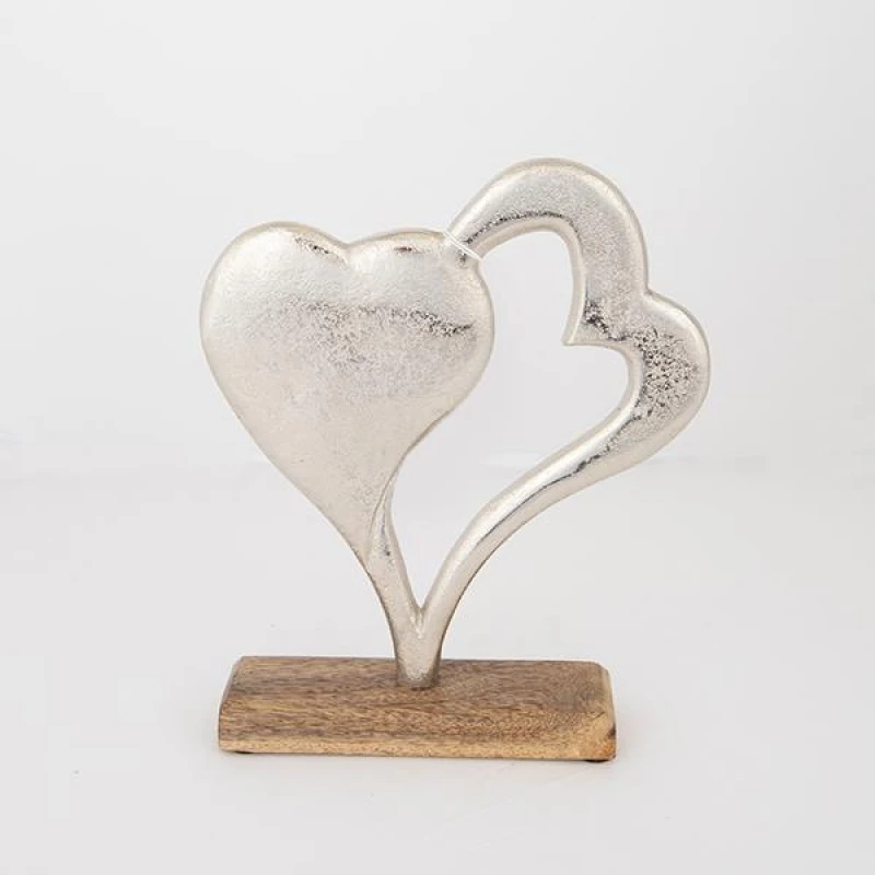 Επιτραπέζιο διακοσμητικό με μεταλλικές καρδιές σε ξύλινη βάση σε ασημί - φυσικό χρώμα από την ESTHETI - Διαστάσεις: 15x5x25εκ.