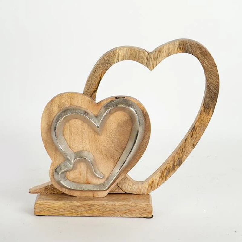 Διακοσμητικό Επιτραπέζιο Καρδιές Με Βάση Ξύλινο-Μεταλλικό Ασημί-Natural 18x5x19εκ. ESTHETI 752-28560