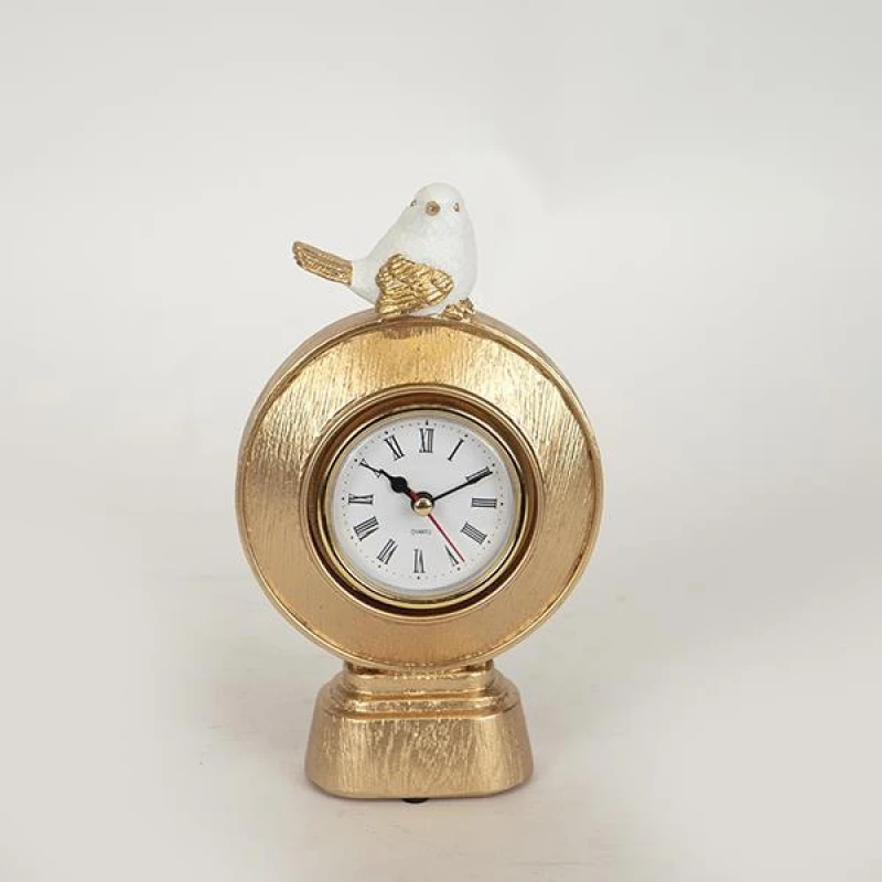 Διακοσμητικό ρολόι με πουλάκι ξύλινο σε λευκό - χρυσό χρώμα από την ESTHETI - Διαστάσεις: 11x4,5x18,2εκ.