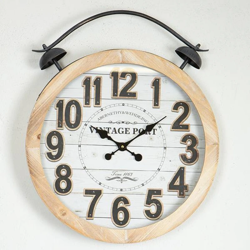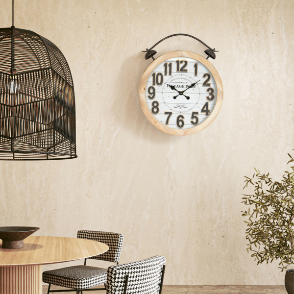 Ρολόι Τοίχου Ξύλινο-Μεταλλικό Natural-Λευκό-Μαύρο 50x6x60εκ. ESTHETI 753-13038