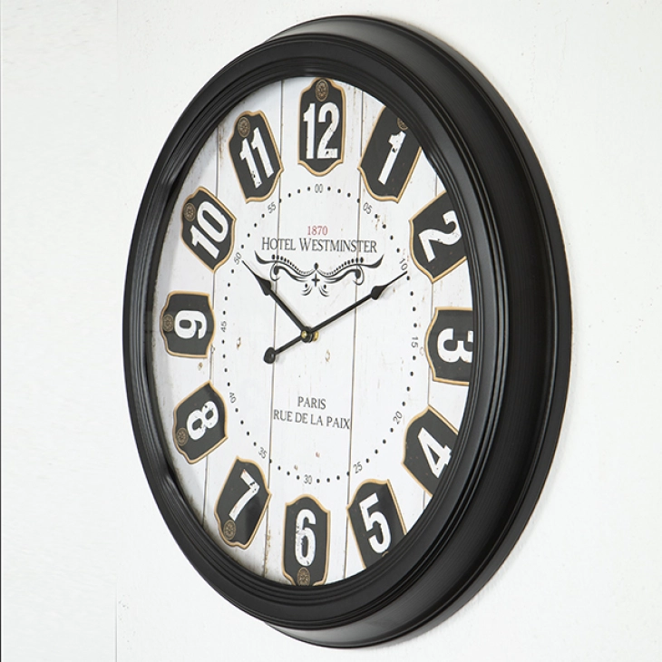 Ρολόι τοίχου ξύλινο - μεταλλικό με γυαλί σε μαύρο - λευκό χρώμα από την ESTHETI - Διαστάσεις: 62x6x62εκ.
