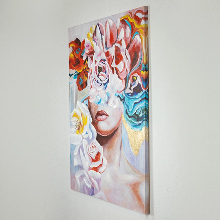 Πίνακας καμβάς γυναικεία φιγούρα με λουλούδια σε ροζ αποχρώσεις από την ESTHETI - Διαστάσεις: 80x3,5x120εκ.