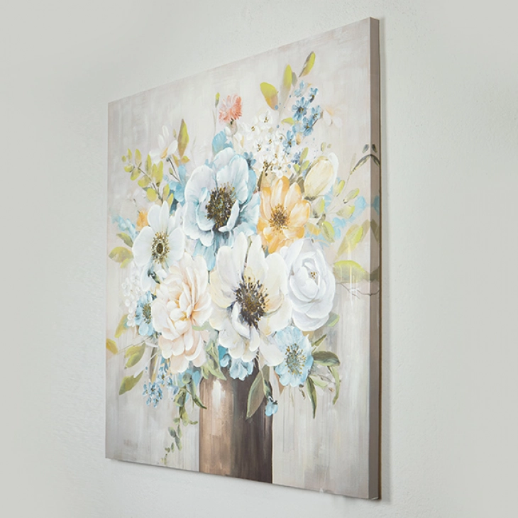 Πίνακας καμβάς με λουλούδια σε μπλε αποχρώσεις και λεπτομέρειες χρυσού από την ESTHETI - Διαστάσεις: 100x3,5x100εκ.