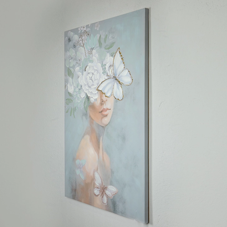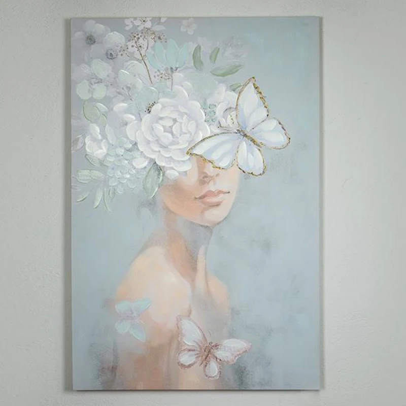 Πίνακας καμβάς γυναικεία φιγούρα με λουλούδια και πεταλούσες από την ESTHETI - Διαστάσεις: 80x3,5x120εκ.