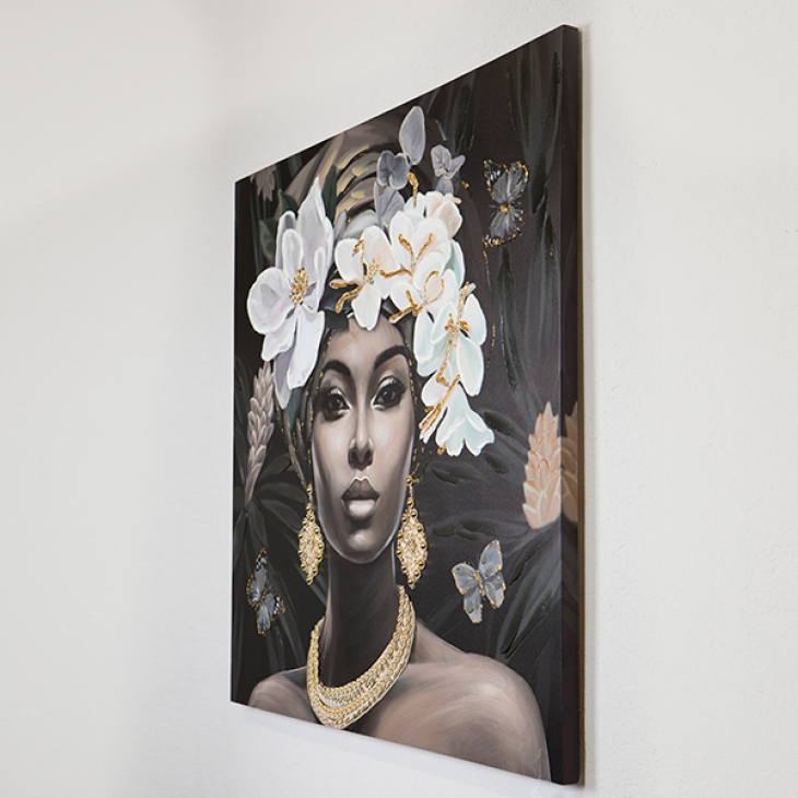 Πίνακας Καμβάς Γυναίκα Με Λουλόυδια Μαύρο-Λευκό-Γκρι 100x3x100εκ. ESTHETI 755-12045